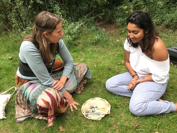 En vandaag besloot ik mijn stoute schoenen aan te trekken en bewust op mensen af te lopen om hen te laten weten dat ik orakel. Het gevolg was dat er de hele tijd mensen naar mij toe kwamen vandaag met de vraag of ik wilde orakelen. En telkens als ik klaar was kwam er een nieuw iemand naar me toe.