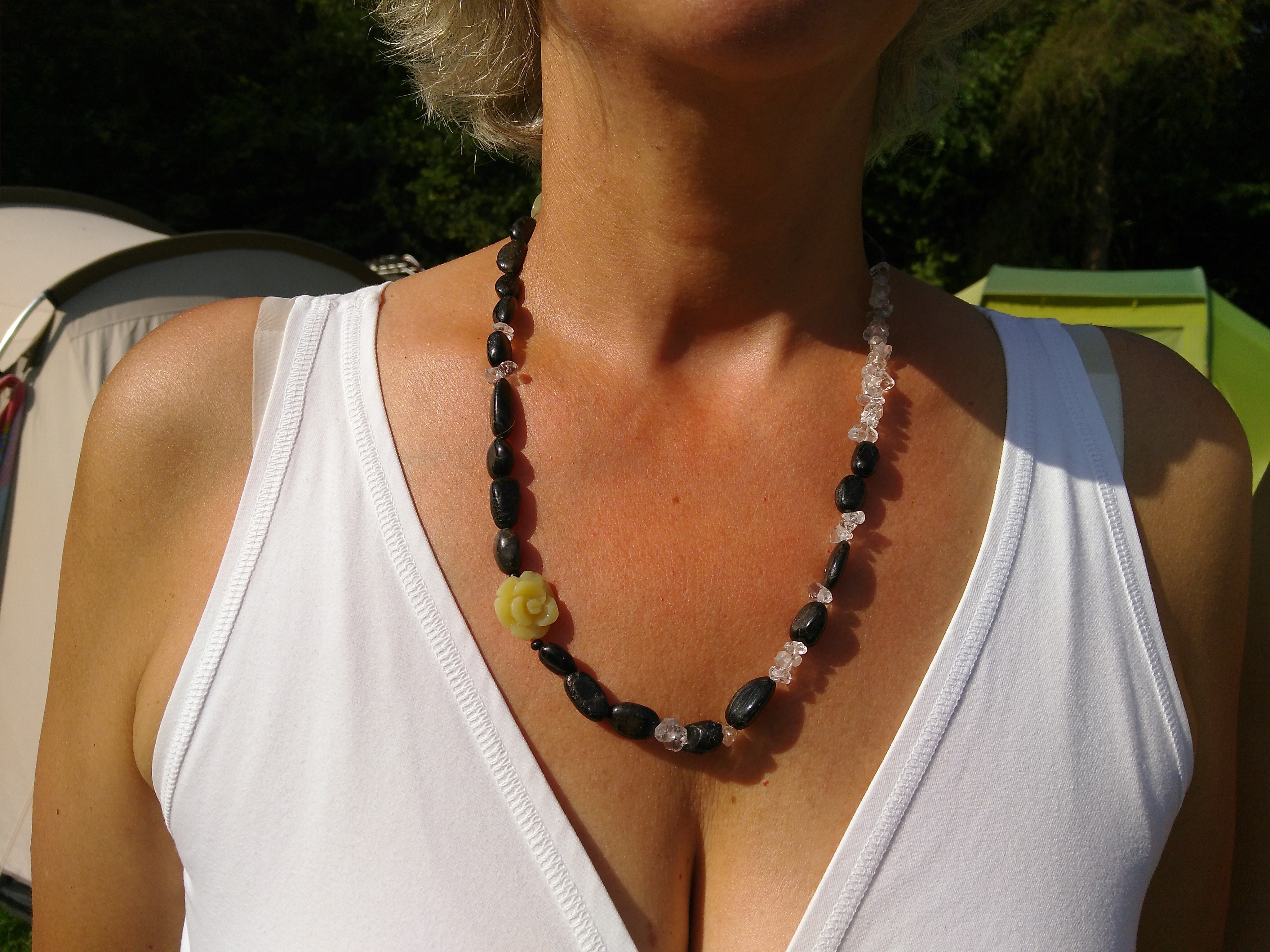 Tijdens het knutselen kan je me vragen stellen over de edelstenen die je gebruikt en heb ik verschillende naslagwerken bij me waarin je veel stenen kan opzoeken. Voor de afwisseling heb ik ook houten- en metalen kralen bij me om je krachtsieraad compleet te maken.